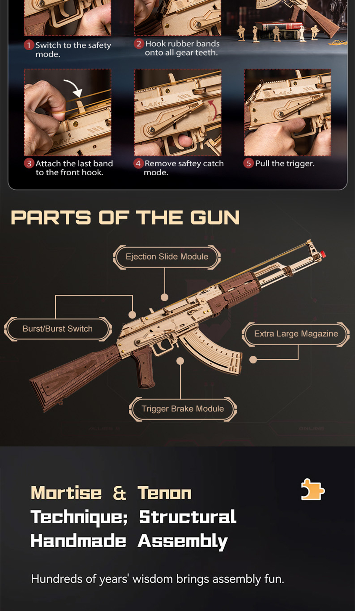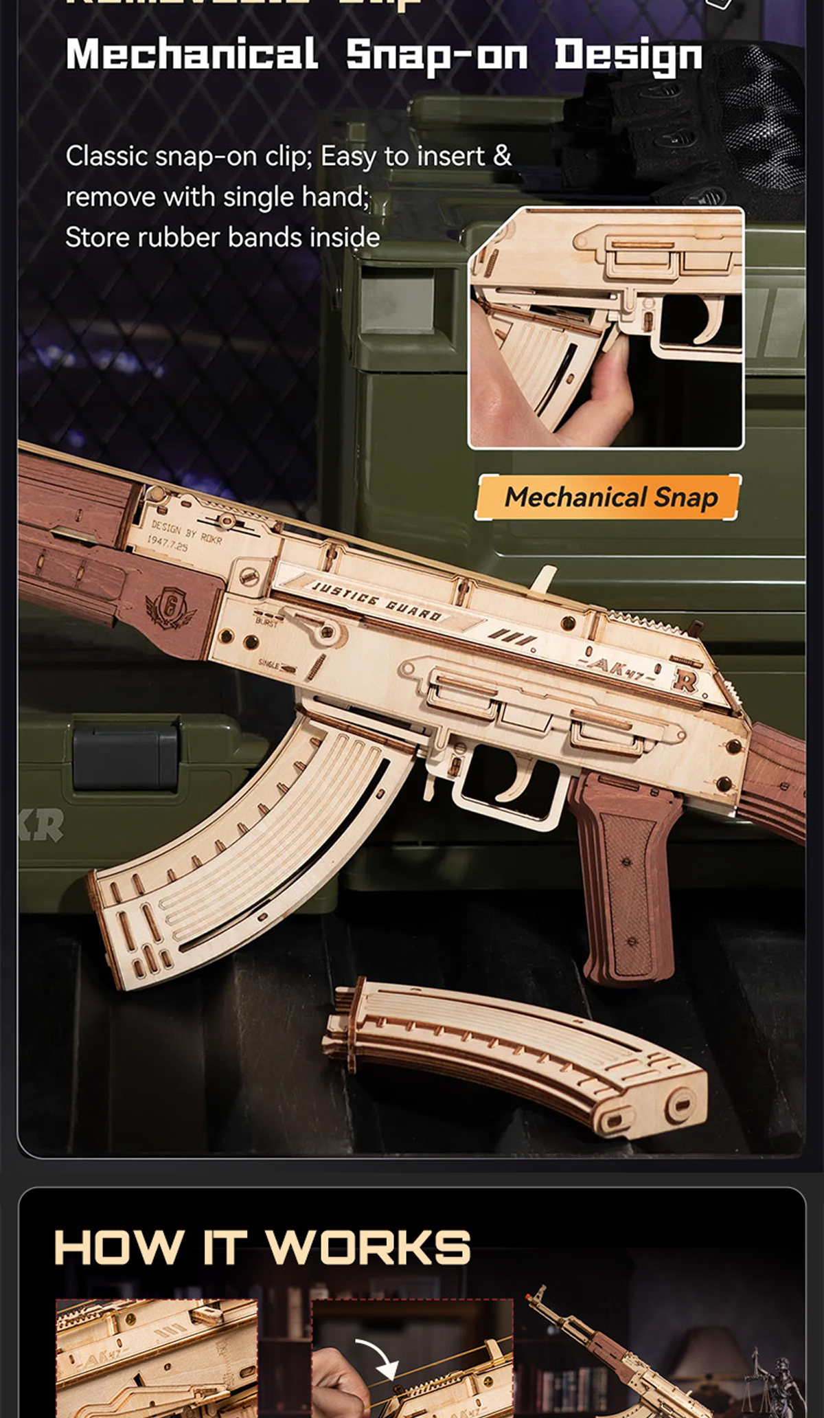 AK-47 Assault Rifle Gun Toy 3D Wooden Puzzle LQ901
